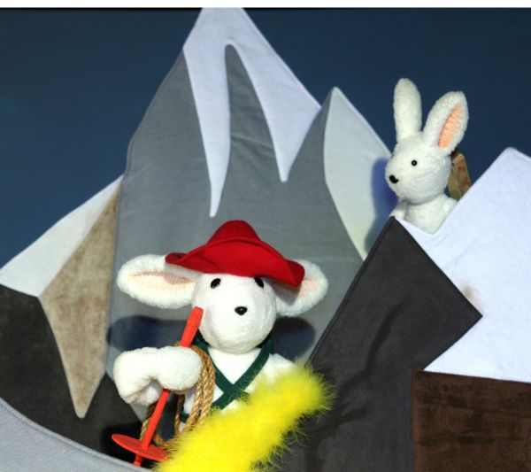 The performance of Goodnight Moon & The Runaway Bunny employs a variety of styles of puppets — including rod and table-top puppets — to tell the two stories. Amazingly, all of the puppets and scenic elements are manipulated by just three puppeteers!