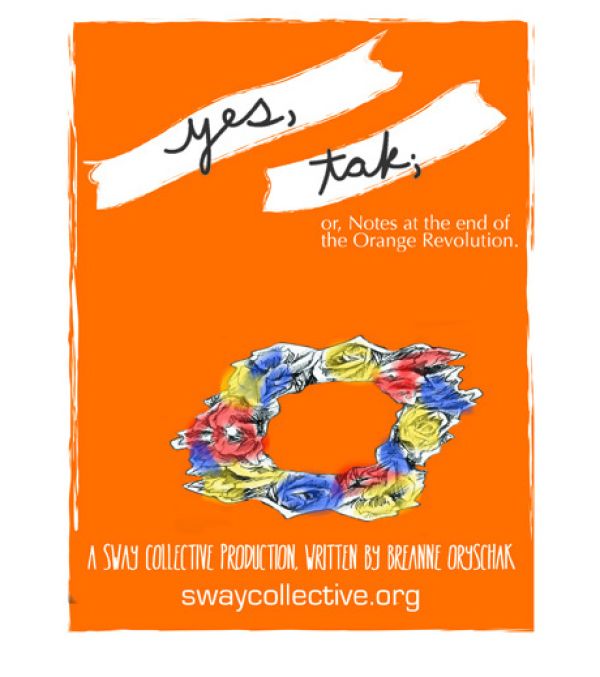 Based in Kingston, SWAY Collective is a multidisciplinary arts group which was founded in 2010. Focusing on the youth culture of both Ukraine and the Diaspora in Canada, the performance will be a collaboration of Breanne Oryschak as writer, director, and choreographer; Janna-Marynn Brunnen as set designer and technician; Ashley Vanstone as composer and music director; and Claire Grady-Smith as marketing and communications specialist. Yes, Tak will be performed April 24th, 25th, and 26th, 2014, at 7pm, at the Baby Grand, Grand Theatre in Kingston.