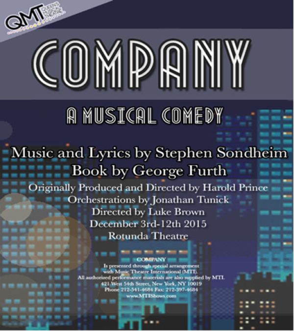 Company explores the many facets of both being in a committed relationship as well as living the single life in a bustling city. Boisterous, poignant, and bitterly honest, Company is a powerful musical comedy that is sure to entertain.