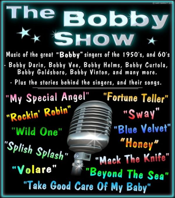 "Smooth, suave and sophisticated" -- The Bobby Show brings you the best of the 'Bobby' crooners from the 1950's and 1960's with this brilliantly conceived production. Sit back and enjoy your favourite hits and stories about the famous 'Bobbys' - Darin, Vee, Helms, Curtola, Goldsboro, Vinton and more.